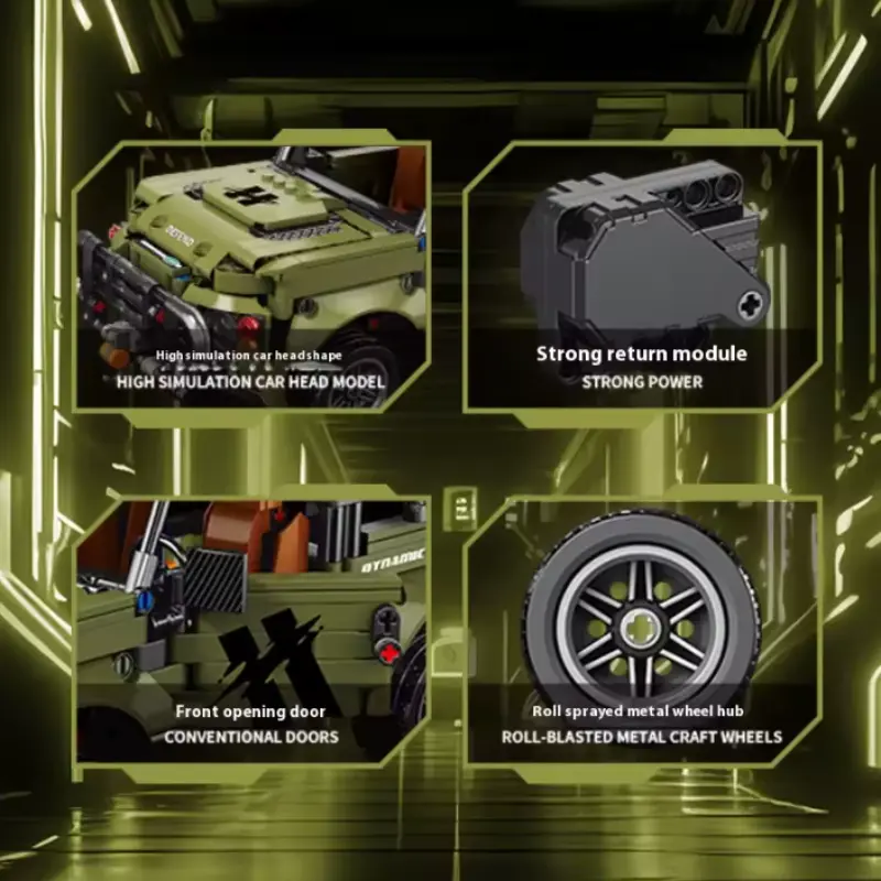 Green Pull-back Off-road Car 1:14 DIY Building Blocks – 768 Pieces