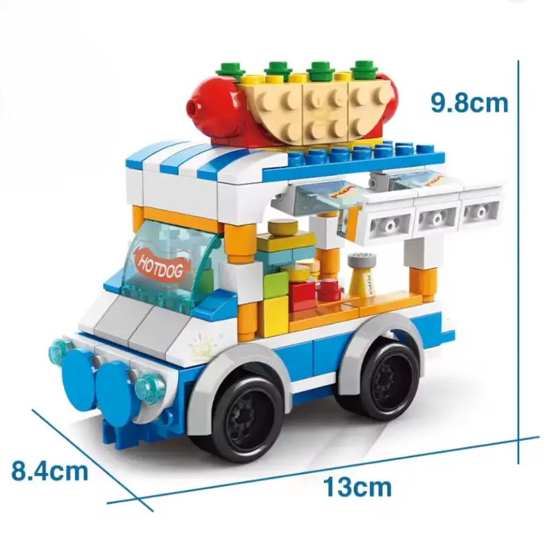 DIY block kits let you create fun mini street food carts such as Sushi Carts, Pizza Carts and more. Perfect for creative play and décor.